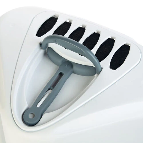 Die Sprint Corner+ Katzentoilette von Stefanplast ist eine eckige Katzentoilette, die in die Ecke des Zimmers passt. So können Sie das Katzenklo außer Sichtweite platzieren. Die Katzentoilette hat eine Tür und eine Schaufel. Die Schaufel kann oben am Katzenklo aufgehängt werden, damit man sie nicht so leicht verliert. Die transparente Tür ist ideal, wenn Ihre Katze die Umgebung beobachten möchte, während sie ihr Katzenklo macht. Die Katzentoilette ist außerdem mit einem Filter ausgestattet, der unerwünschte Gerüche filtert.