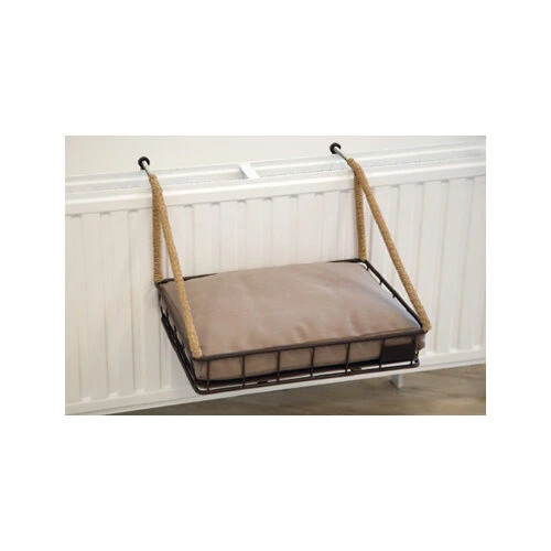 Die Designed by Lotte Ropa Katzenhängematte ist ein warmer und bequemer Platz für Ihre Katze. Er kann über den Heizkörper gehängt werden und ist bis zu einer Höhe von ca. 11 cm verstellbar. Die Katzenhängematte ist aus Metall gefertigt und hat ein passendes braunes Kissen.
